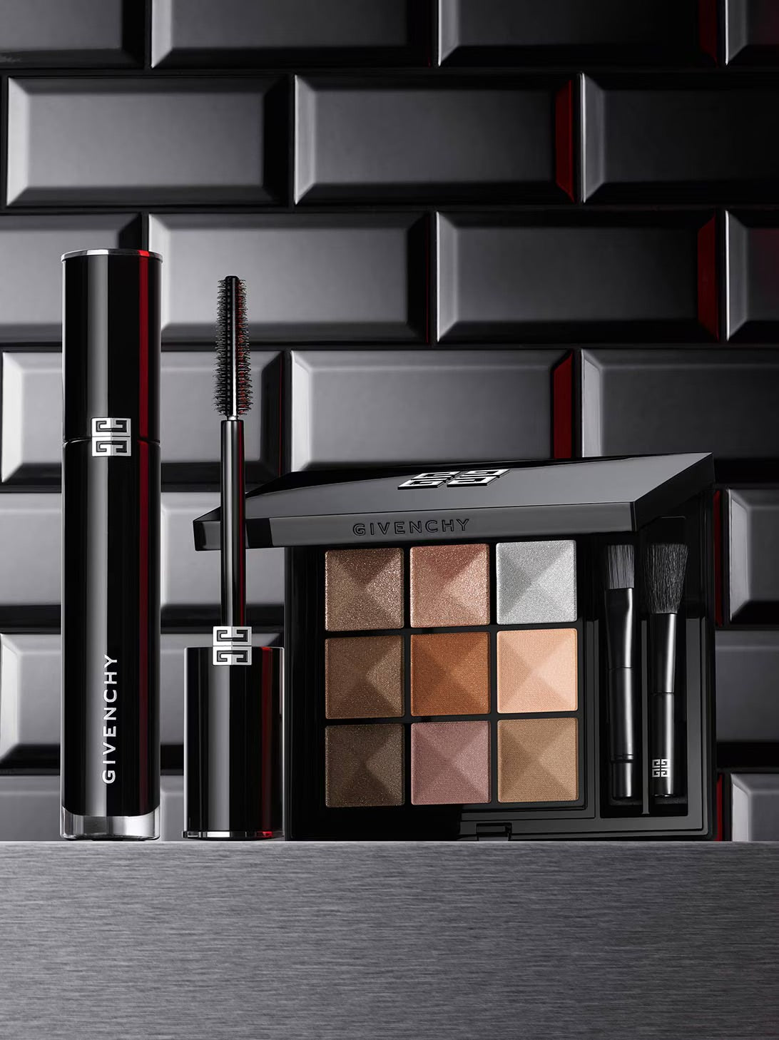 مستحضران أساسيان لإطلالة جريئة. لوحة ألوان "لو 9" من جيڤنشي، قطعة حقيقية من الكوتيور الراقي، تتيح ابتكار العديد من الإطلالات الرائعة، من الأكثر طبيعيةً الى الأكثر رقياً. تتوافق بشكل مثالي مع "لينتردي كوتيور ڤوليوم ماسكارا"، التي تعزز من نظرات العيون وتبرزها بسحر كثافة هائلة، على الفور، ولمدة 24 ساعة.