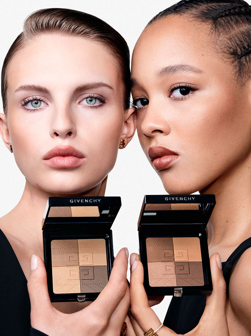 مزيج من أربعة ألوان متكاملة تم مزجها في بودرة برونزية واحدة لتمنح تأثير التسمير، الإشراق، النحت، والتألق. لتأثير غير لامع قبلته الشمس وبشرة جميلة على الفور، من دون أي مظهر مرئي لقوام البودرة.