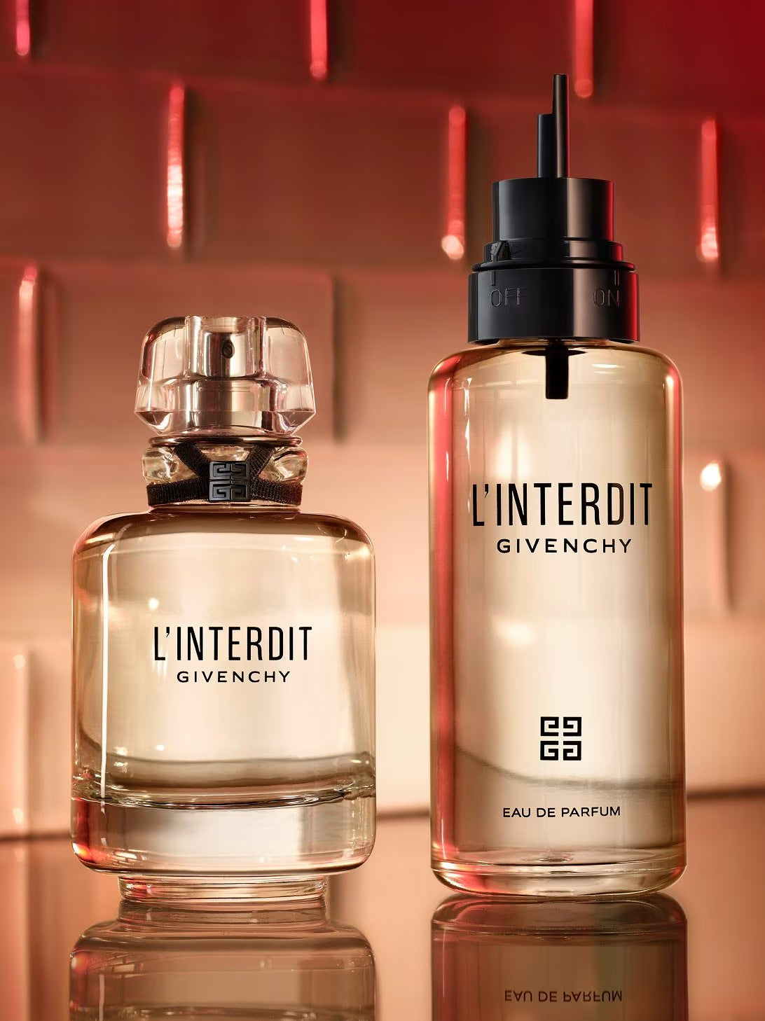 "لينتردي أو دو بارفان" متوفر الآن في قارورة عطر قابلة لإعادة التعبئة بسعة 100 مل، إلى جانب عبوة زجاجية مخصصة لإعادة التعبئة سعة 150 مل. بفضل هذا الابتكار، يمكن إعادة تعبئة القارورة بسهولة وسرعة ودقة.