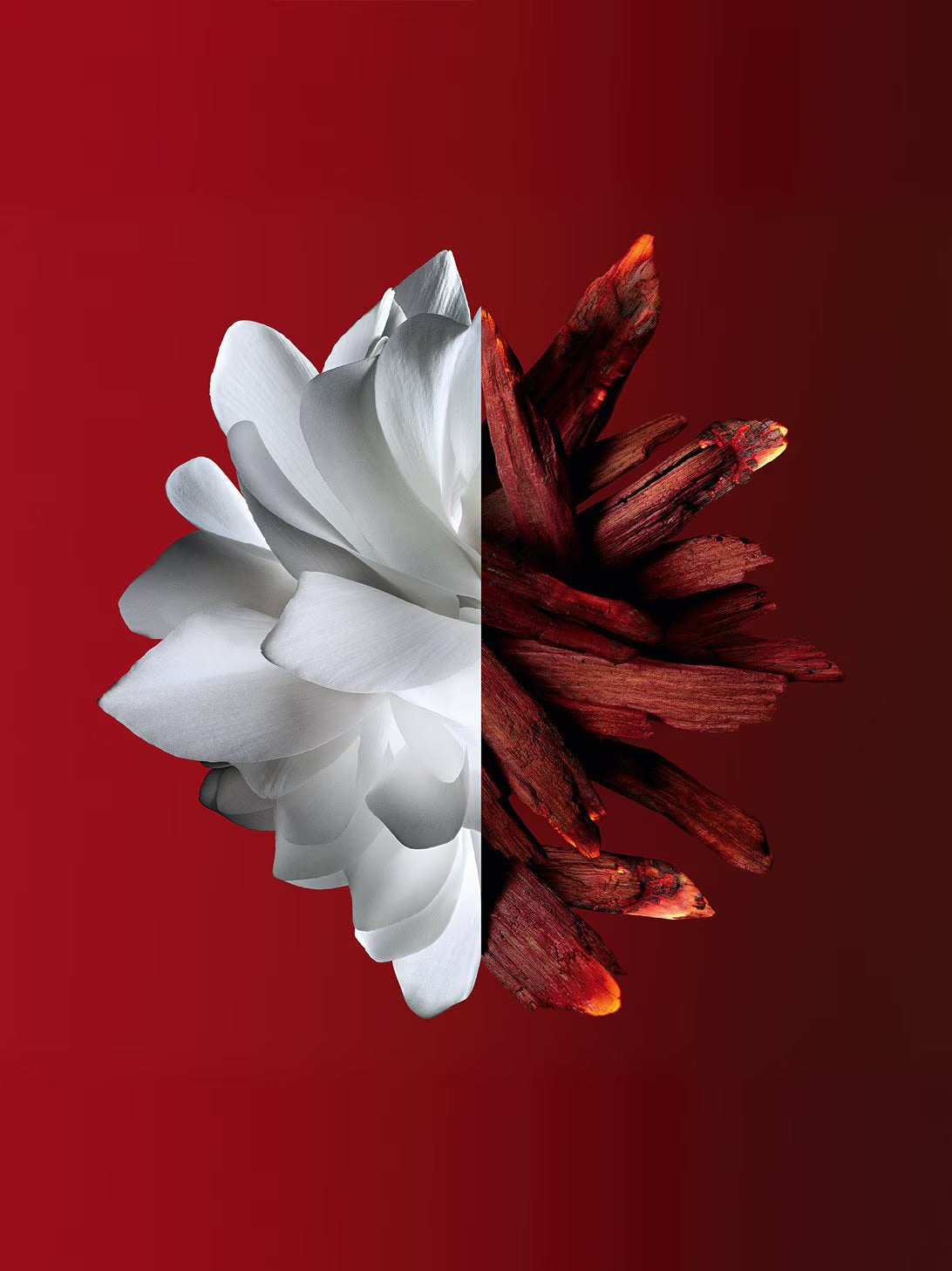 Luminous orange blossom and opulent jasmine combine in incandescence. A spicy red accord composed of blood orange, ginger, and pimento leaf is caressed by suave sandalwood, leaving a trail of provocative promise.