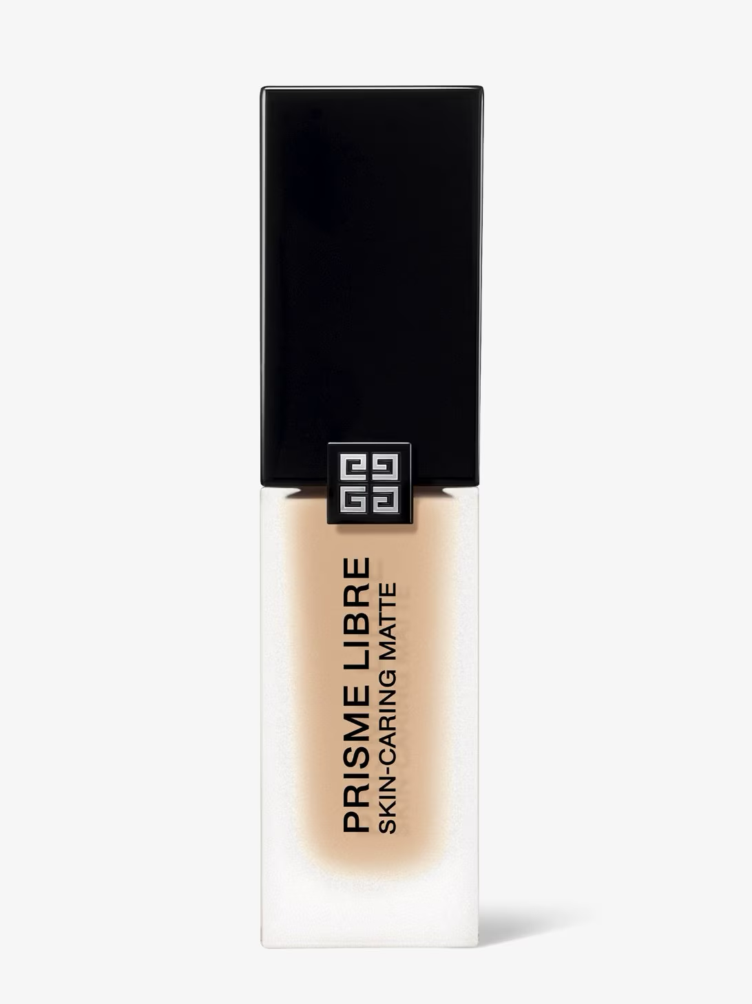 The sculptural packaging echoes the sharp Givenchy couture signature of Prisme Libre, complete with the emblematic 4G logo. As precious as a perfume bottle, the frosted matte glass reflects the luminous matte finish of the foundation it contains.